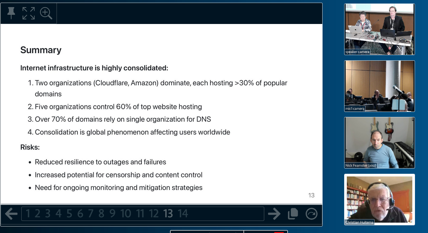 Presenting our research on DNS and web hosting consolidation to the IETF DINRG community.