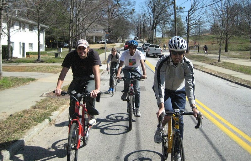 A Ph.D. can be a great adventure, and a time to make friends, too. Here I am on a bike ride in Atlanta with my research group at Georgia Tech back in March 2008. The bonds you form with other Ph.D. students can be life-long.